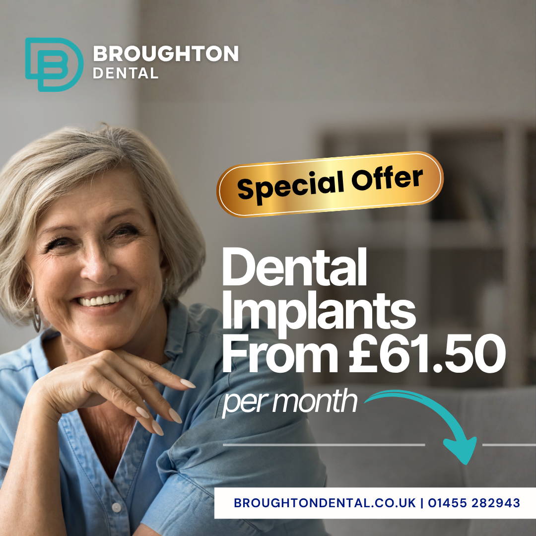 Start your journey with dental implants in Leicester from £61.50 per month at Leicester Broughton Dental.